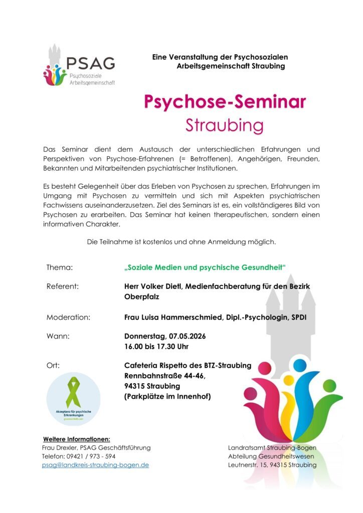Veranstaltet wird dieses durch die Psychosoziale Arbeitsgemeinschaft (PSAG), welche am Gesundheitsamt Straubing-Bogen angegliedert ist.