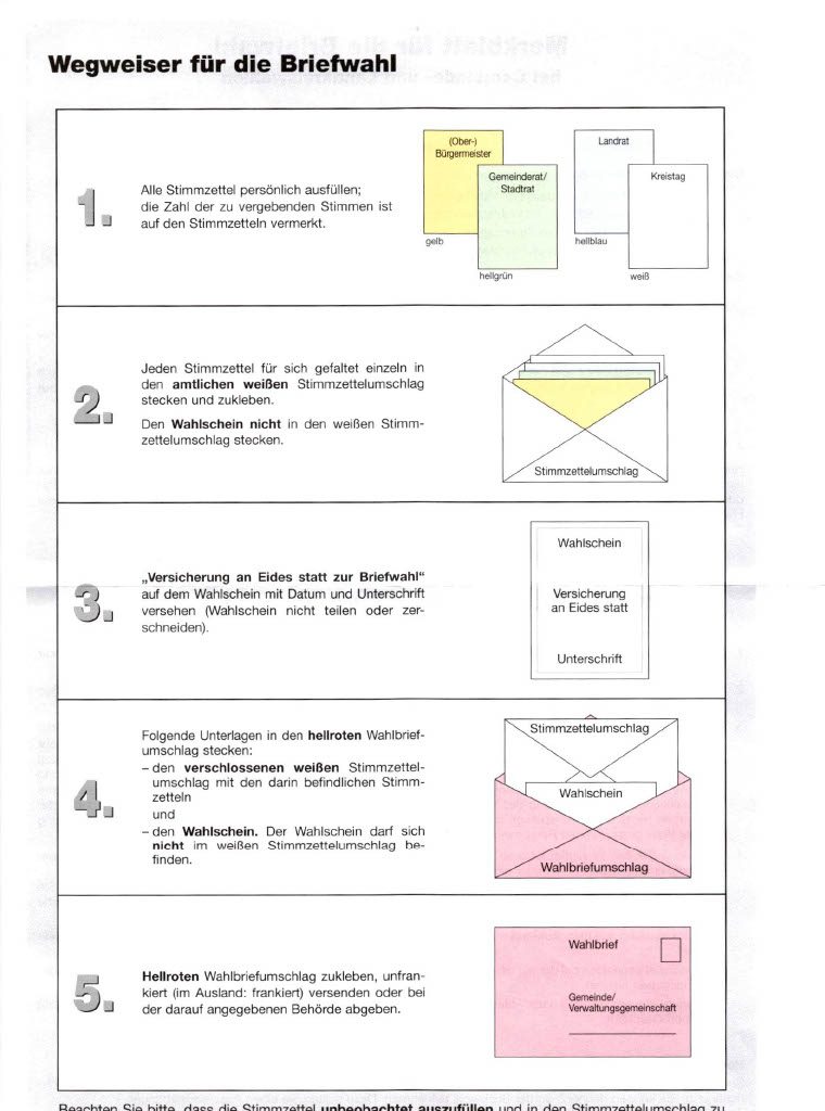 - Der Wahlschein (Schreiben in DIN A 4) muss unterschreiben werden